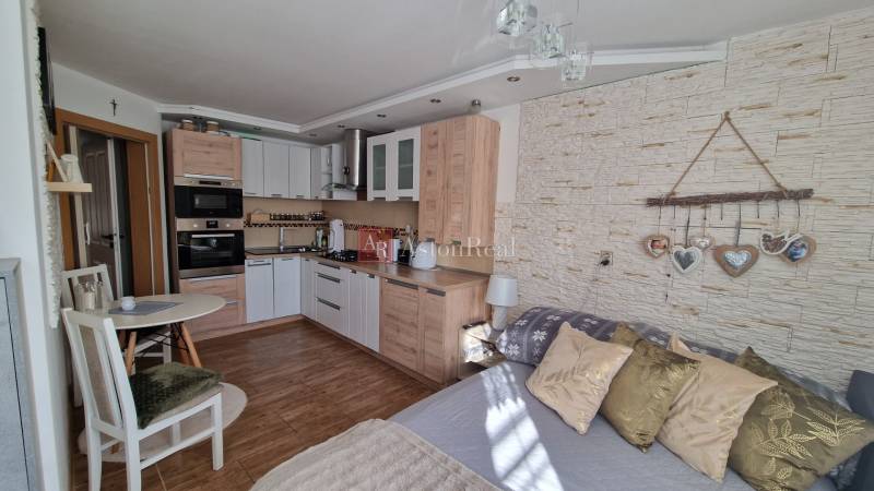 Druhy byt je dvojizbový s vchodom zo zadnej časti domu. Obývacia miestnosť a kuchyňa je jemne pod úrovňou terénu . Kuchyňa je rohová s opačným rohom. Kúpeľňa s WC je hneď vedľa. Zaujímavosťou tohto bytu je samostatná spálňa na poschodí.